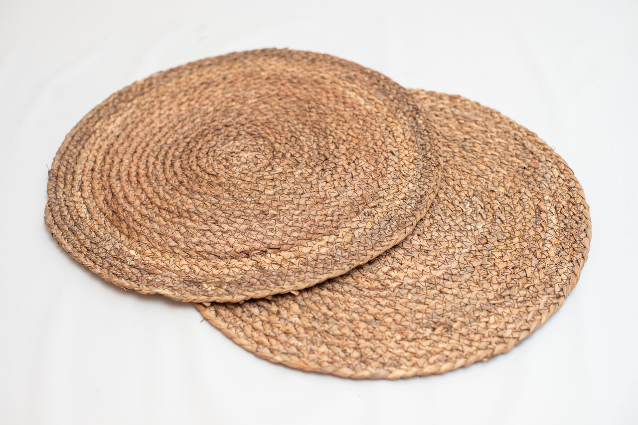 O Jogo americano Redondo Palha é feito em fibra natural.